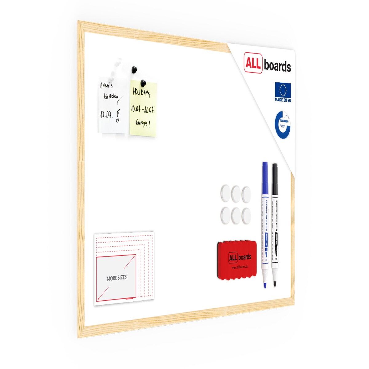 ALLboards Magnetisches Whiteboard mit Naturholzrahmen 80x50cm