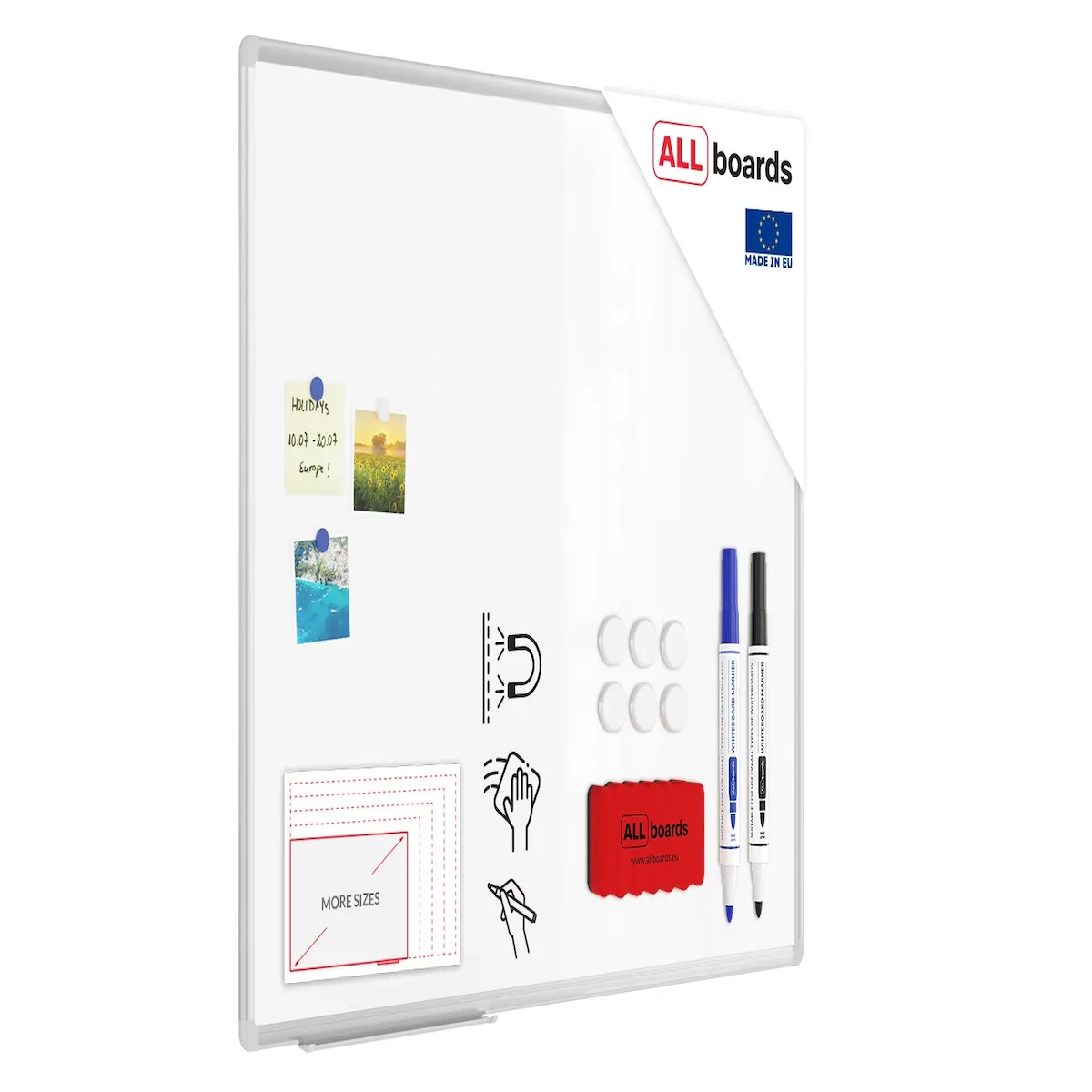 ALLboards Magnetisches Whiteboard 60x40cm Magnettafel mit Aluminiumrahmen A7 + Stifteablage, Trocken Abwischbar