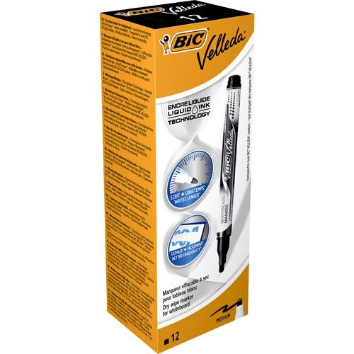 BIC Velleda Liquid Ink Non-permanent Whiteboard-Marker Schwarz Mittel Rundspitze 1 - 2,2 mm 12 Stück