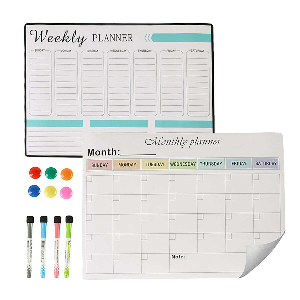 Relaxdays Whiteboard für Kühlschrank, Wochenplaner & Monatsplaner Set, magnetisch, abwischbar, 4 Stifte, 6 Magnete, weiß