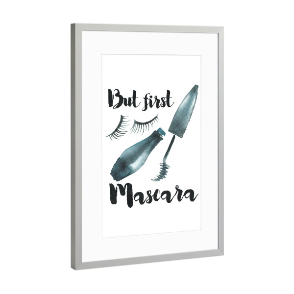 Poster mit Rahmen Silber "But First Mascara" artboxONE - Schwarzweiß,Fashion - Aber erste wimperntusche,Make-up-kunst,Aquarell,Mode