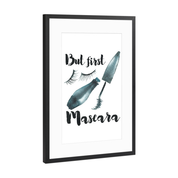Poster mit Rahmen Schwarz (Metallic) "But First Mascara" artboxONE - Schwarzweiß,Fashion - Aber erste wimperntusche,Make-up-kunst,Aquarell,Mode