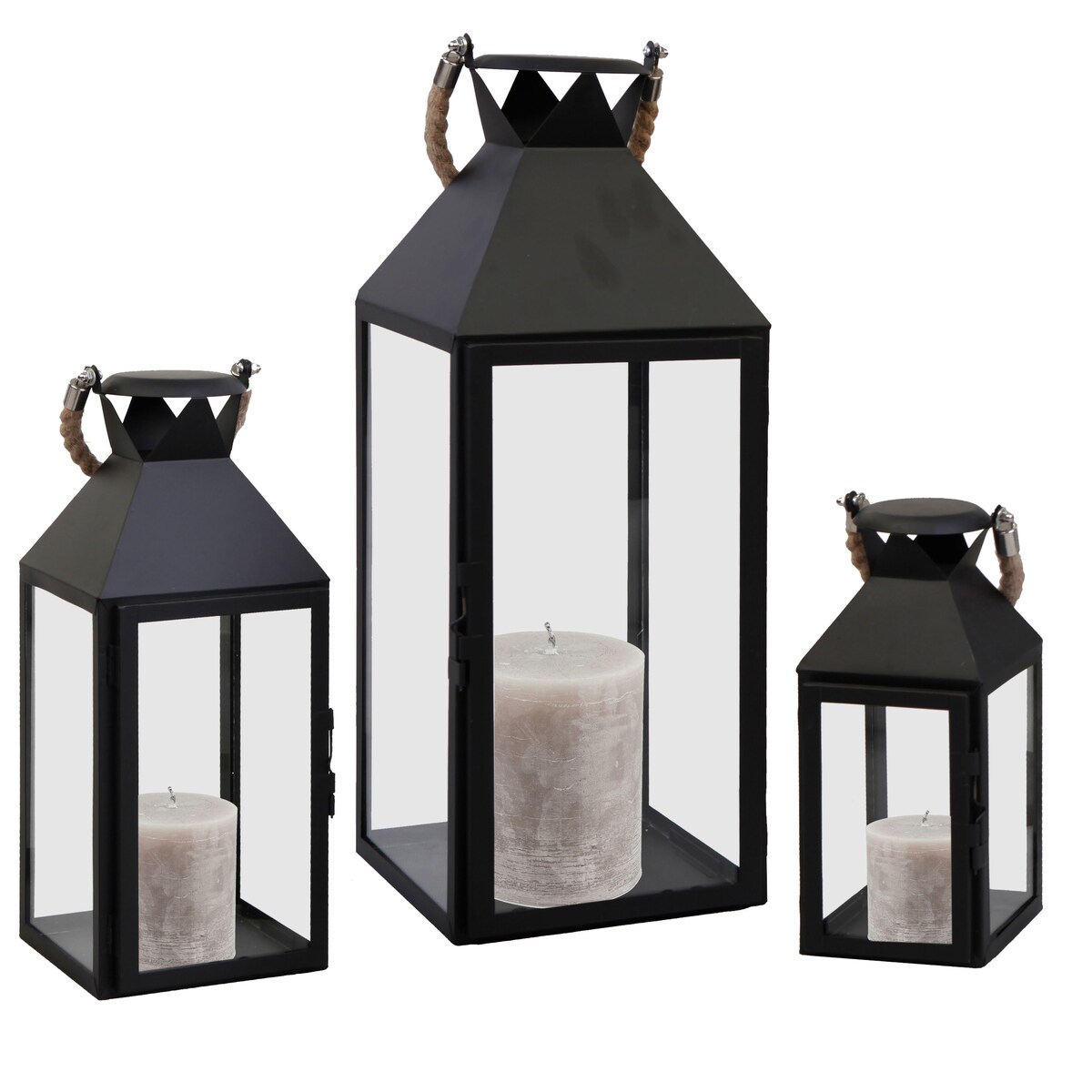 Mojawo 3er Laternen Set Stalllaterne Windlicht Schwarz Metall H25/40/51cm