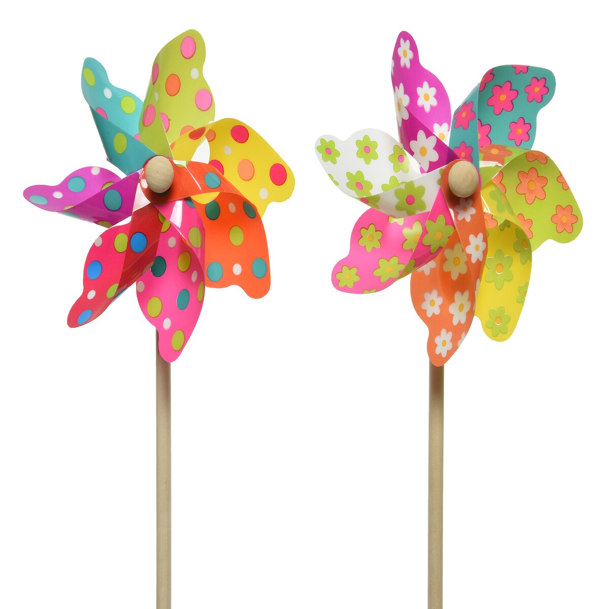 Dekorative bunte Windmühle auf Stab aus wetterfestem PVC, 2 Stück