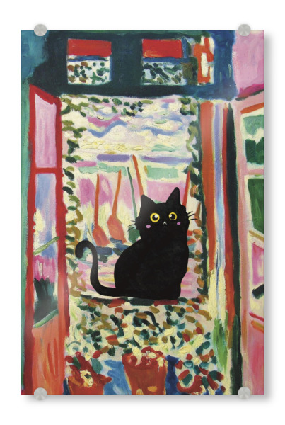 Acrylglasbild "Cat In The Window" artboxONE - Tiere - Cat in the window,Animal,Modern art,Parody,Humor,Black cat,Contemporary