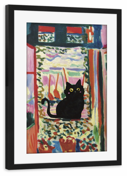 Poster mit Rahmen schwarz "Cat In The Window" artboxONE - Tiere - Cat in the window,Animal,Modern art,Parody,Humor,Black cat,Contemporary
