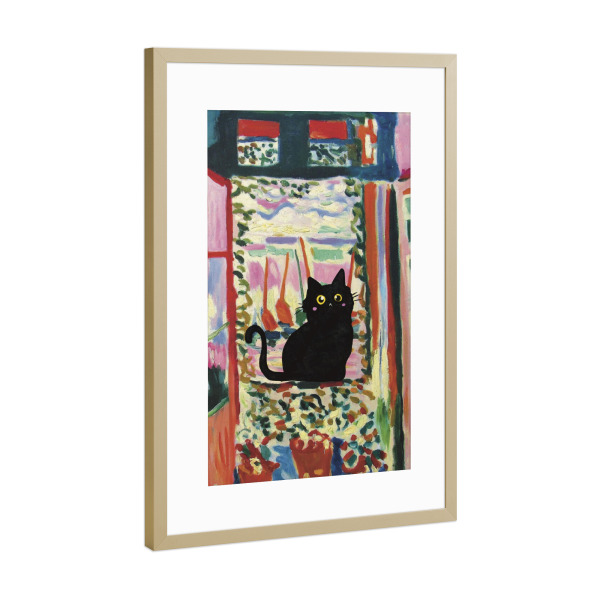 Poster mit Rahmen Gold "Cat In The Window" artboxONE - Tiere - Cat in the window,Animal,Modern art,Parody,Humor,Black cat,Contemporary