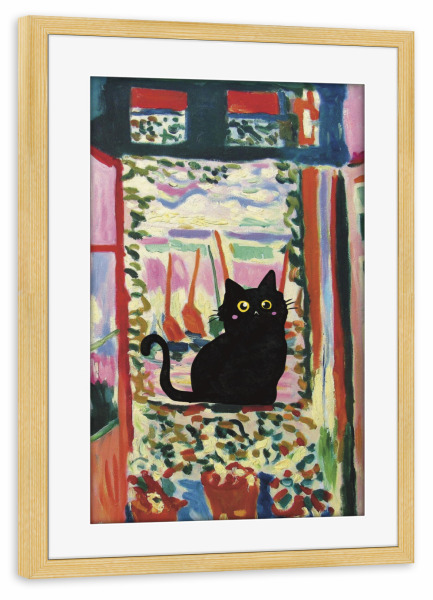 Poster mit Rahmen kiefer "Cat In The Window" artboxONE - Tiere - Cat in the window,Animal,Modern art,Parody,Humor,Black cat,Contemporary