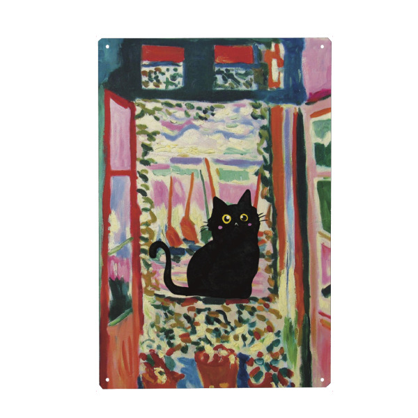 Holzbild "Cat In The Window" artboxONE - Tiere - Cat in the window,Animal,Modern art,Parody,Humor,Black cat,Contemporary