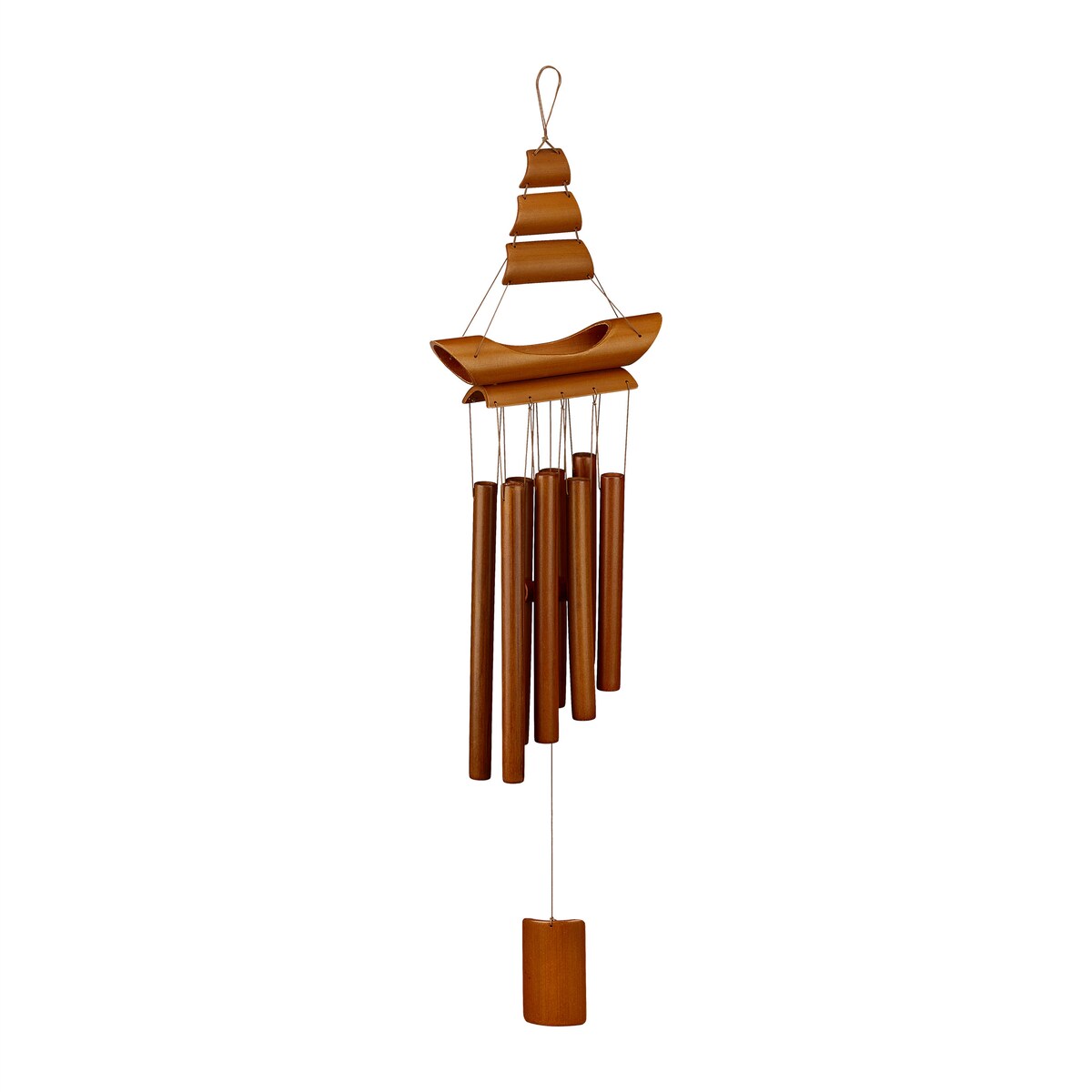 Windspiel Bambus, Klangspiel Segelboot-Design, Hängedeko draußen & drinnen, HBT: 72x20x6 cm, Windorgel, braun