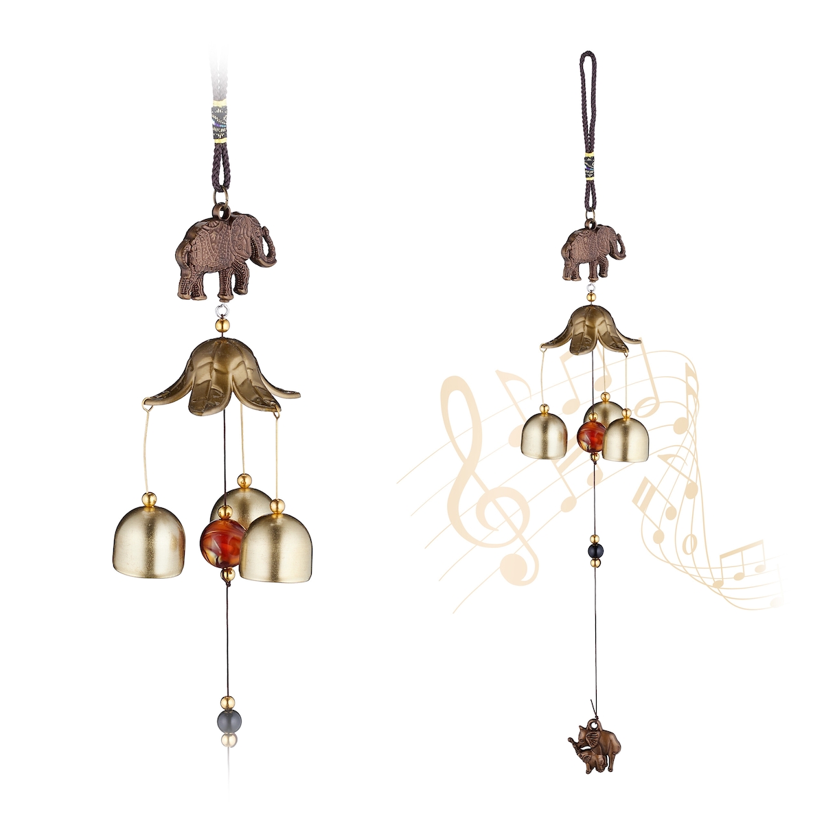 Relaxdays Windspiel 2er Set, Metall Glockenspiel, draußen & drinnen, Garten Klangspiel, hängend, Feng Shui, gold/schwarz