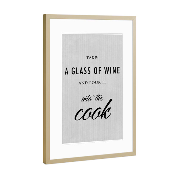 Poster mit Rahmen Gold "Take: A Glass of Wine" artboxONE - Typografie,Essen & Trinken - Glass,Wine,Cook