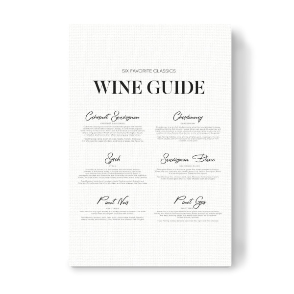 Leinwandbild "Wine guide to six favorite classics" artboxONE - Typografie,Schwarzweiß,Essen & Trinken / Alkohol