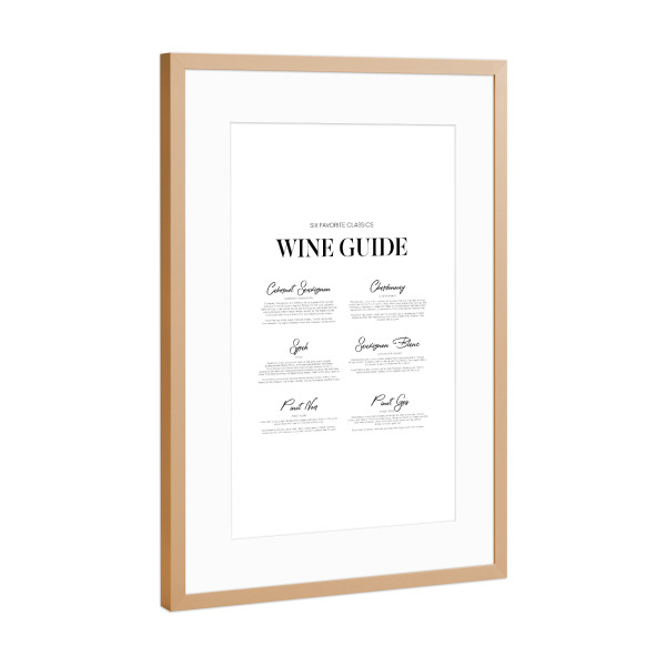 Poster mit Rahmen Kupfer "Wine guide to six favorite classics" artboxONE - Typografie,Schwarzweiß,Essen & Trinken / Alkohol