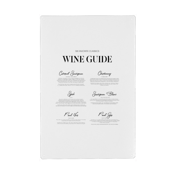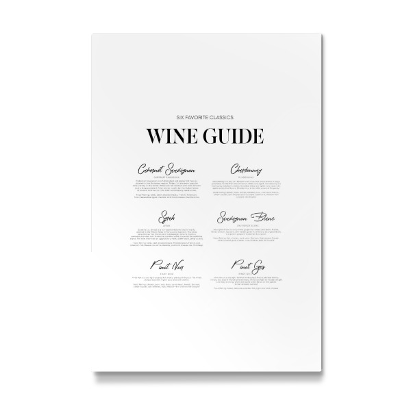 Metall Poster "Wine guide to six favorite classics" artboxONE - Typografie,Schwarzweiß,Essen & Trinken / Alkohol