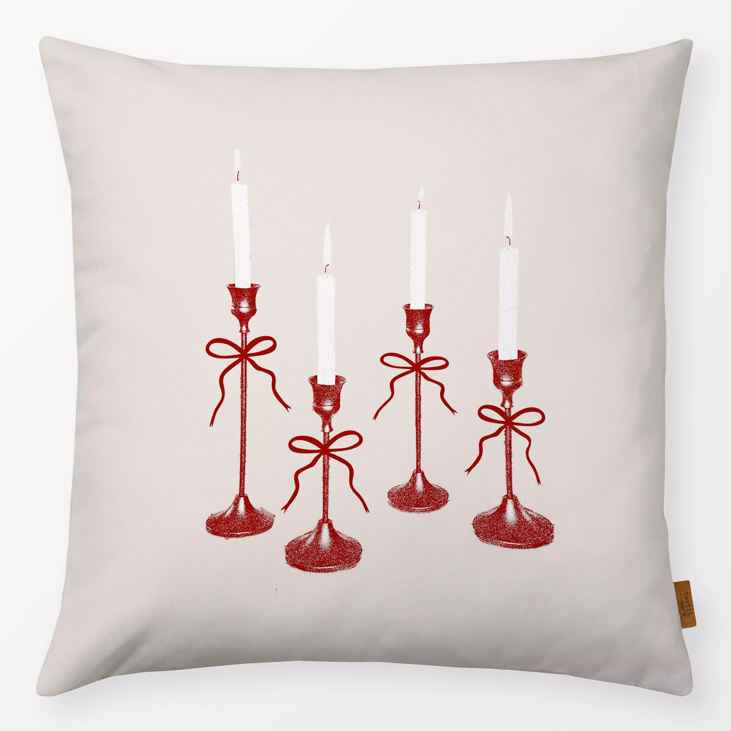 Kissen Christmas Candles Beige - Weihnachten, Winter - von „textilwerk"; Retro, Cozy, Geschenk, Weihnachtsdeko, schleife, ra...