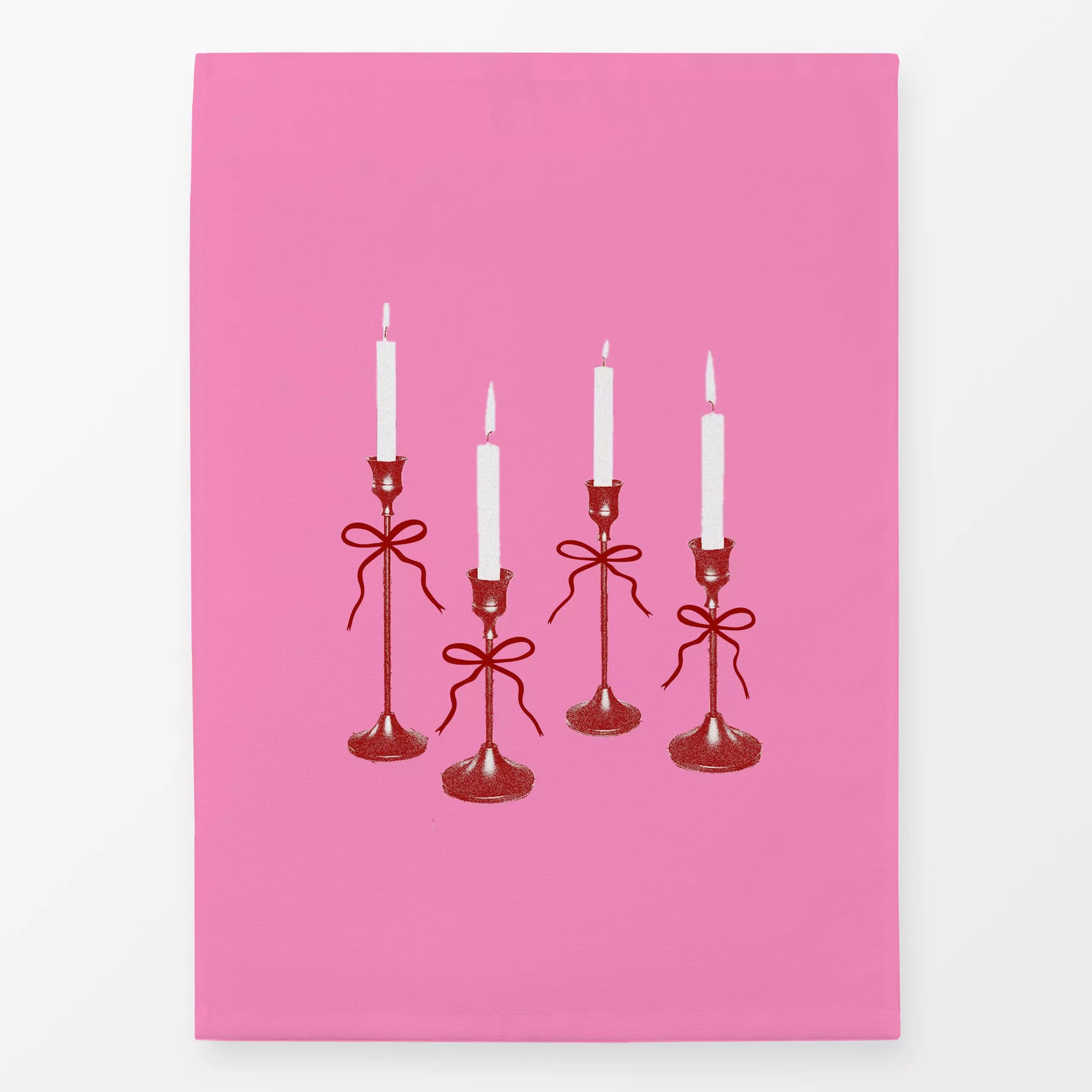 Geschirrtücher Christmas Candles Pink - Weihnachten, Winter - von „textilwerk"; rosa, Retro, Merry Christmas, Weihnachten, w...