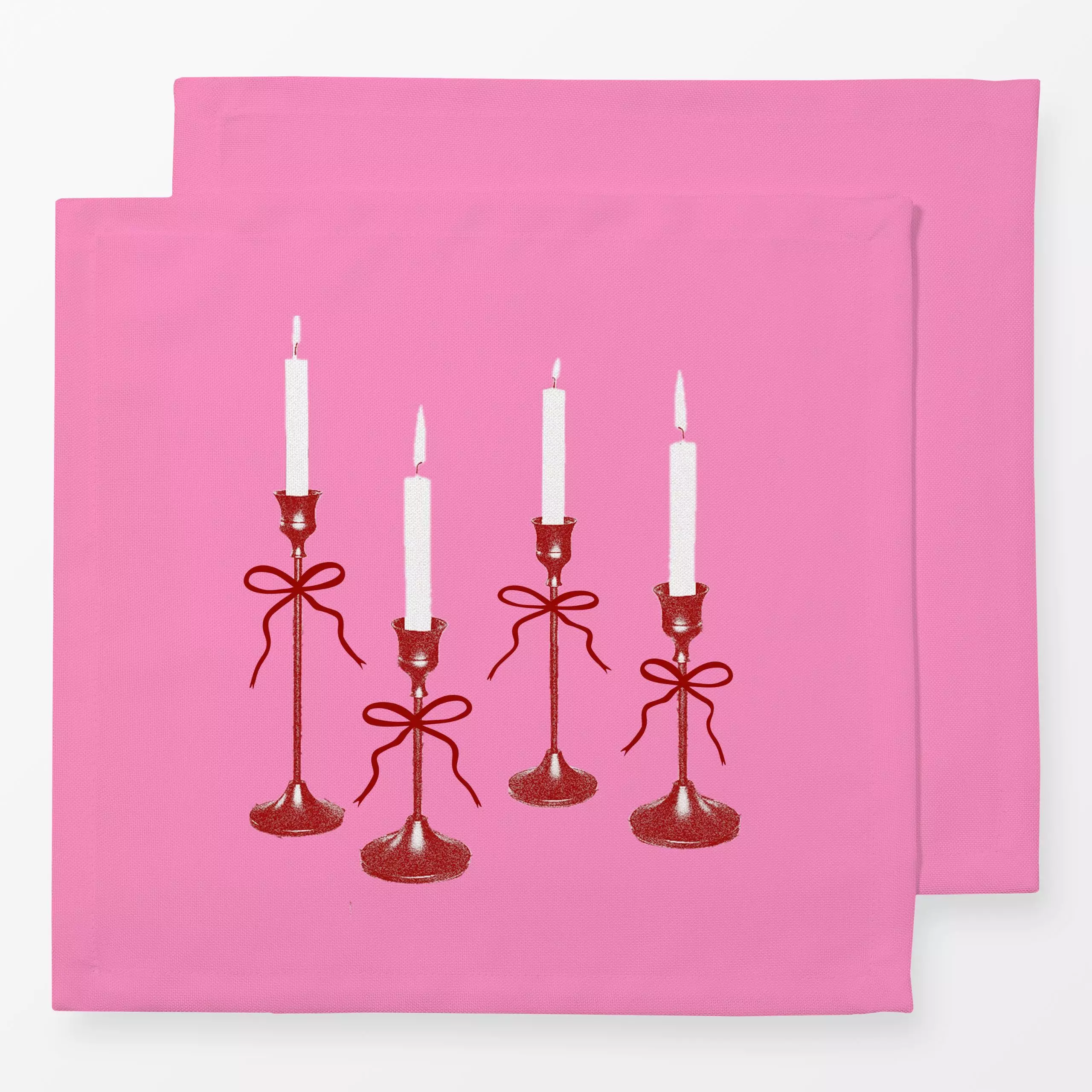 Servietten Christmas Candles Pink - Weihnachten, Winter - von „textilwerk"; rosa, Retro, Merry Christmas, Weihnachten, weihn...