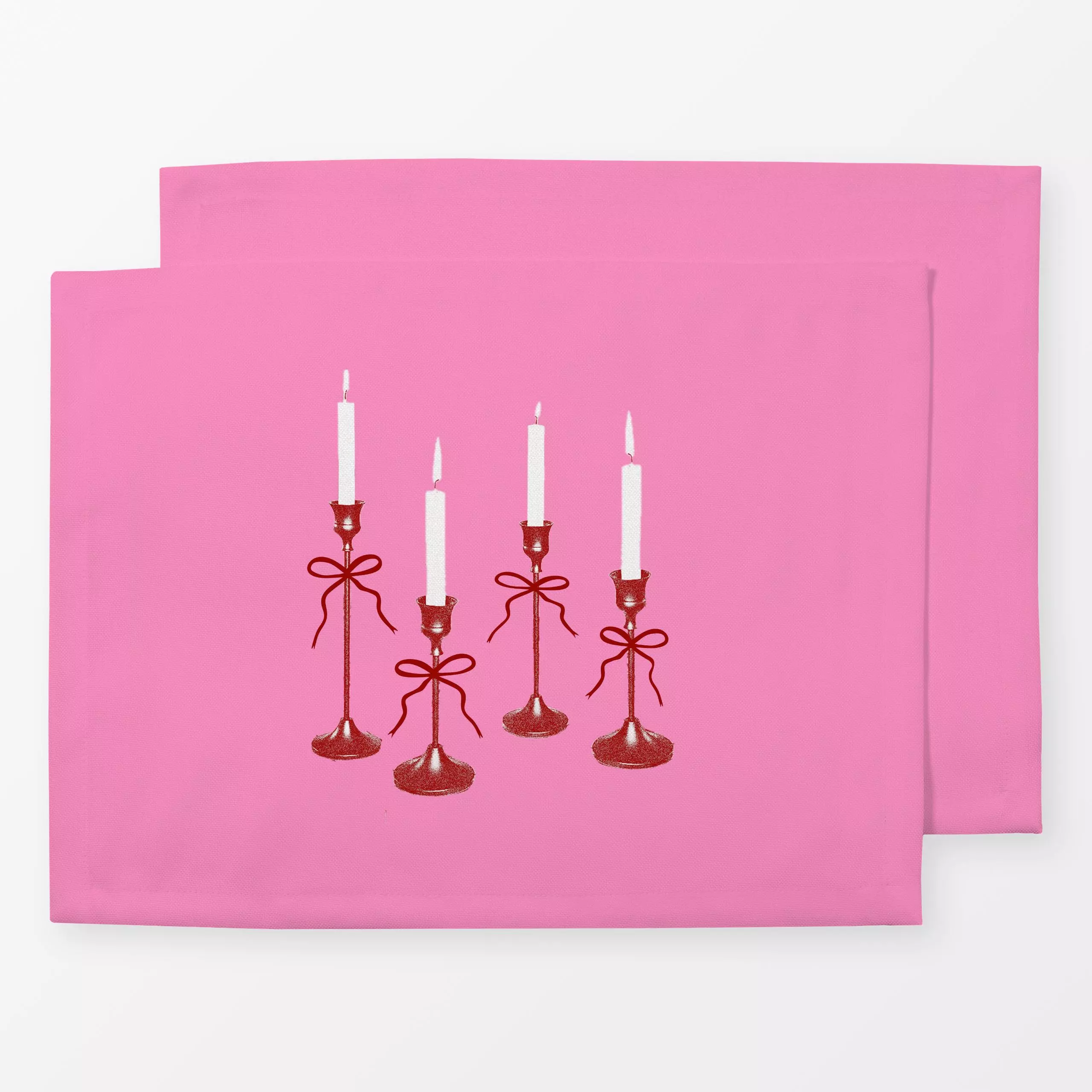 Tischset Christmas Candles Pink - Weihnachten, Winter - von „textilwerk"; rosa, Retro, Merry Christmas, Weihnachten, weihnac...