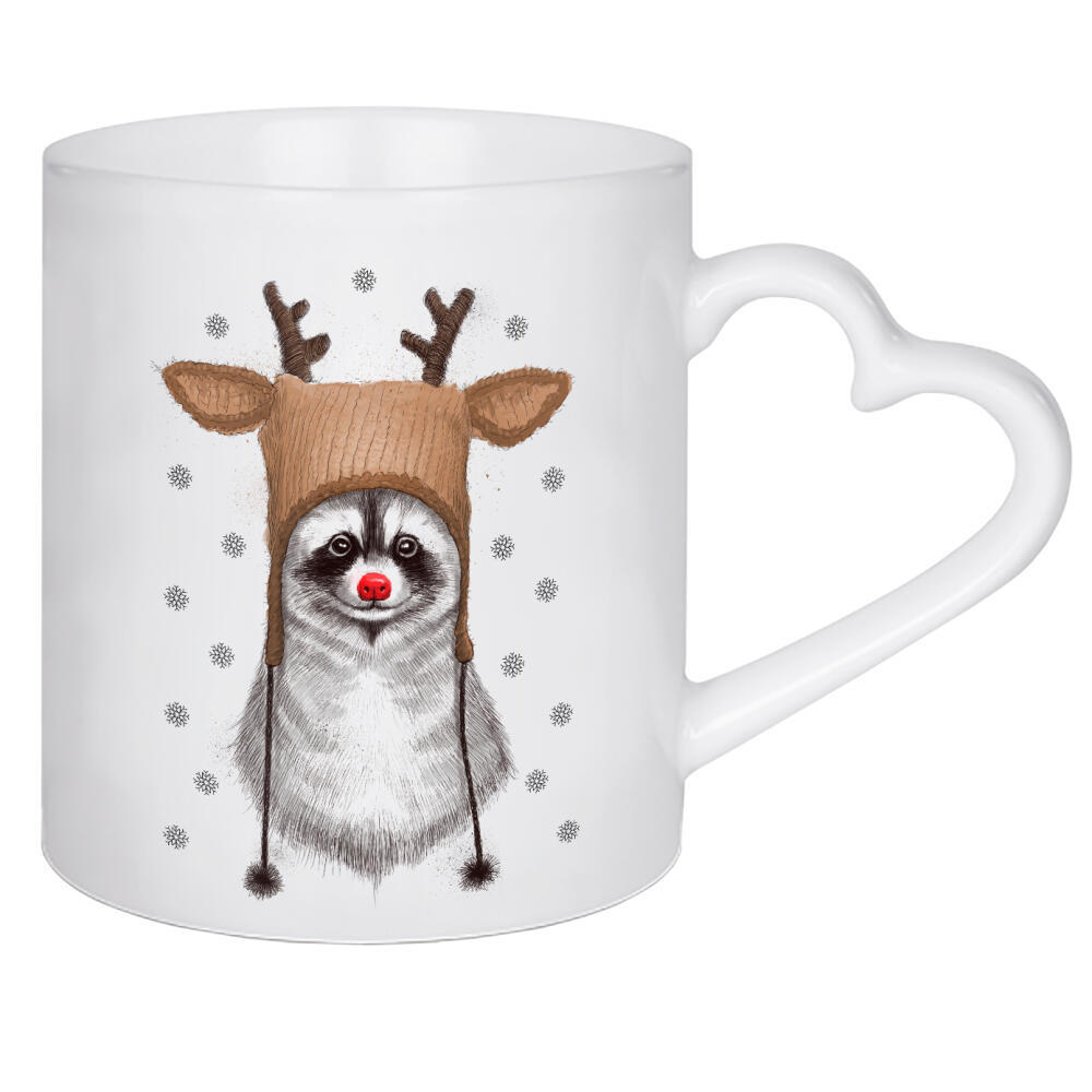 Herztasse "Raccoon in Deer Hat" artboxONE - Natur,Tiere - Waschbär,Tier,Weihnachten,Hirschhut,Winter,Schnee,Kinder