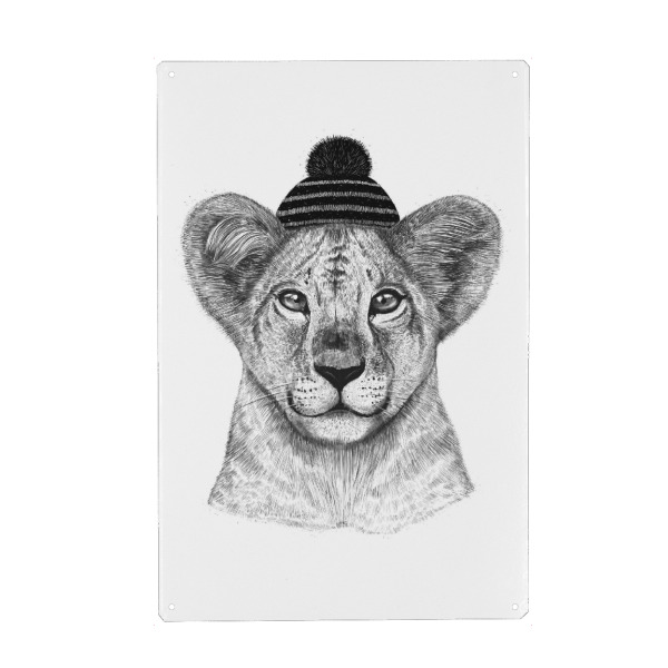 Holzbild "Kid lion in winter hat" artboxONE - Tiere,Schwarzweiß,Weihnachten,Lustig