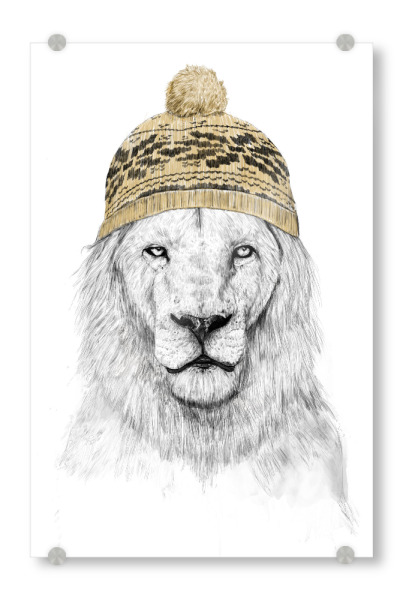Acrylglasbild "Winter lion" artboxONE - Tiere,Lustig - Lion,Animal,Hat,Winter