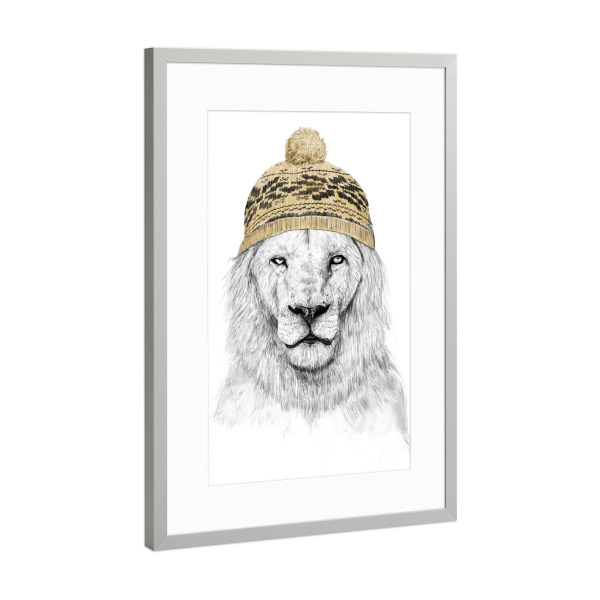 Poster mit Rahmen Silber "Winter lion" artboxONE - Tiere,Lustig - Lion,Animal,Hat,Winter