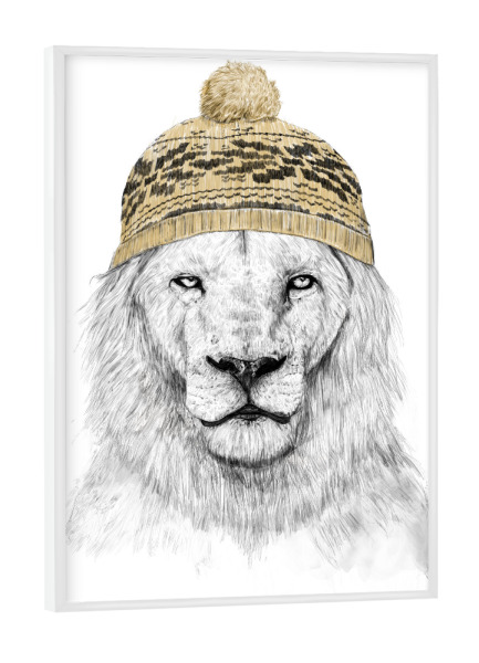 Poster mit weißem Rahmen "Winter lion" artboxONE - Tiere,Lustig - Lion,Animal,Hat,Winter
