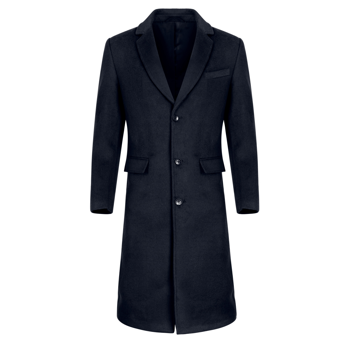 Herren Lang Slim Fit Winter Warm Business Wollmantel Schwarz
