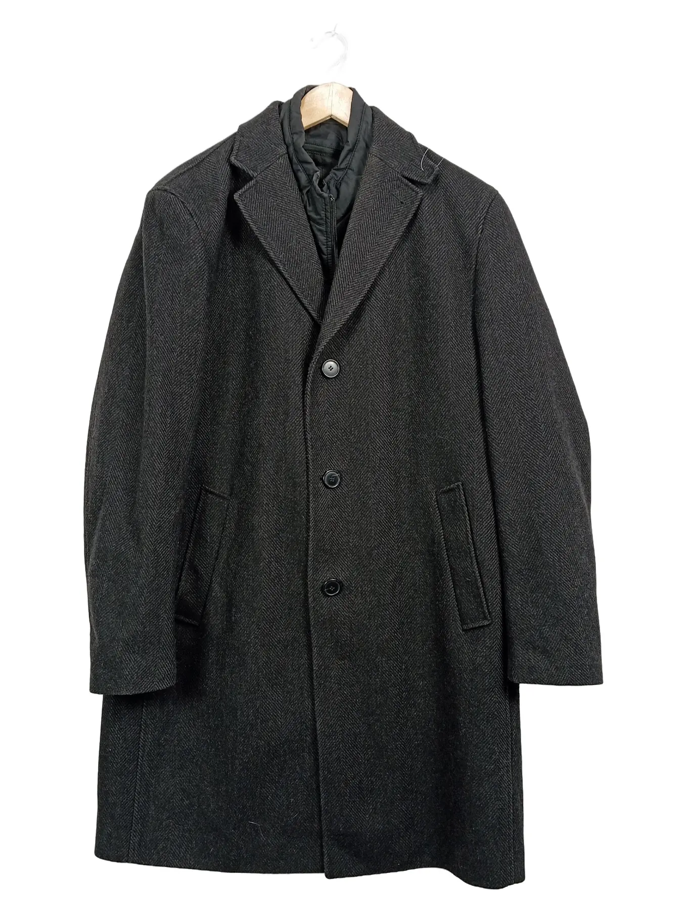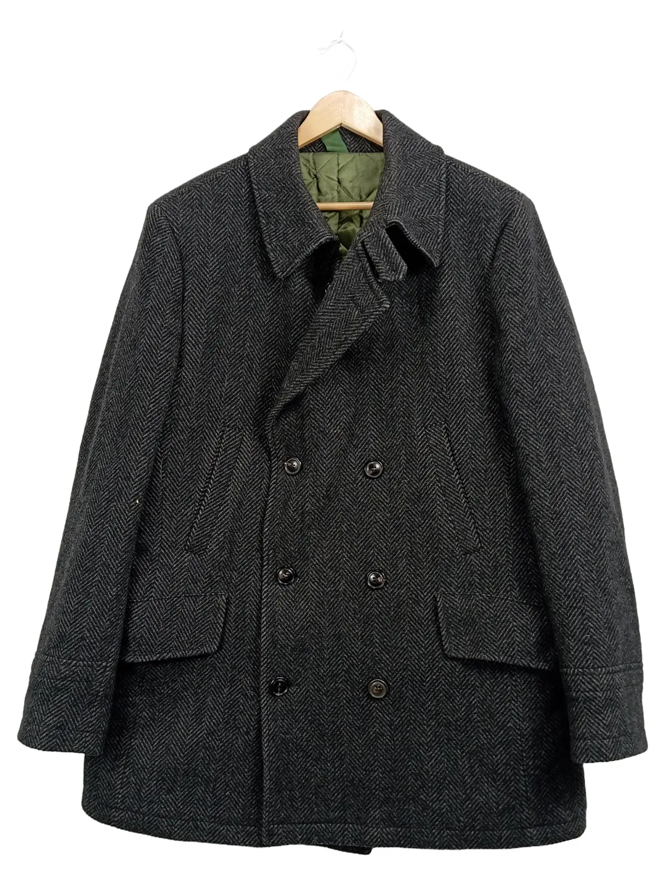 MARKENLOS Herren Wollmantel Gr. 56 Fischgrät Grau Doppelreihig Klassisch Winter