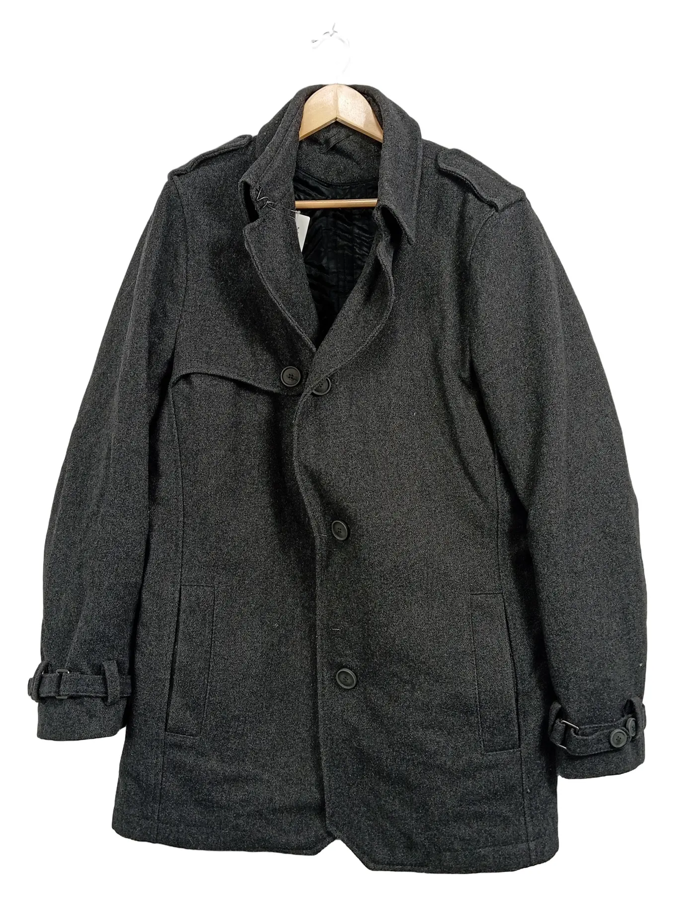 MARKENLOS Sisley Herren Wollmantel Gr. 52 XL Grau Klassisch Trenchcoat Winter