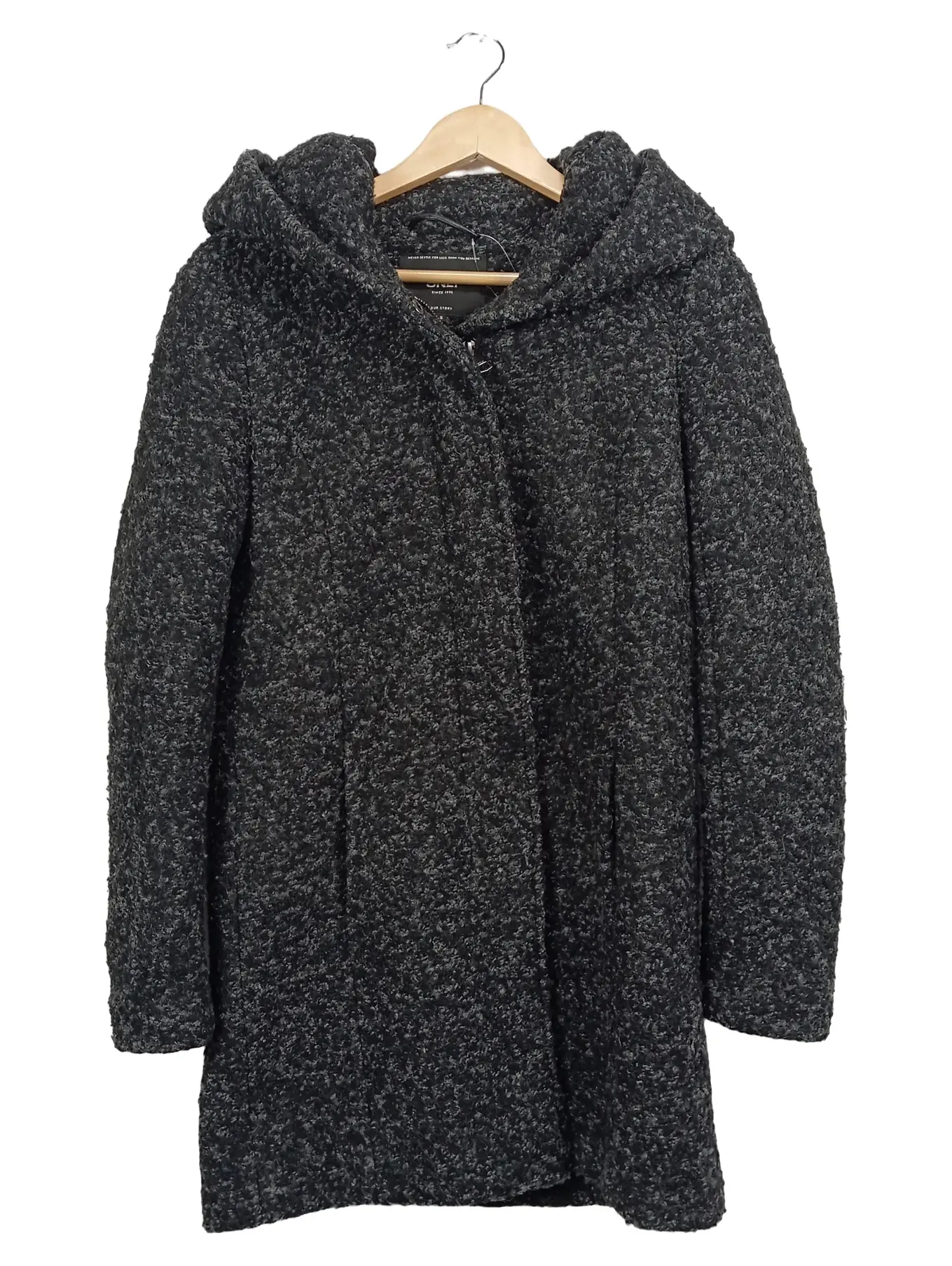 ONLY Damen Winterjacke Mantel Grau Gr. 36 S Strukturmuster Kapuze Freizeit