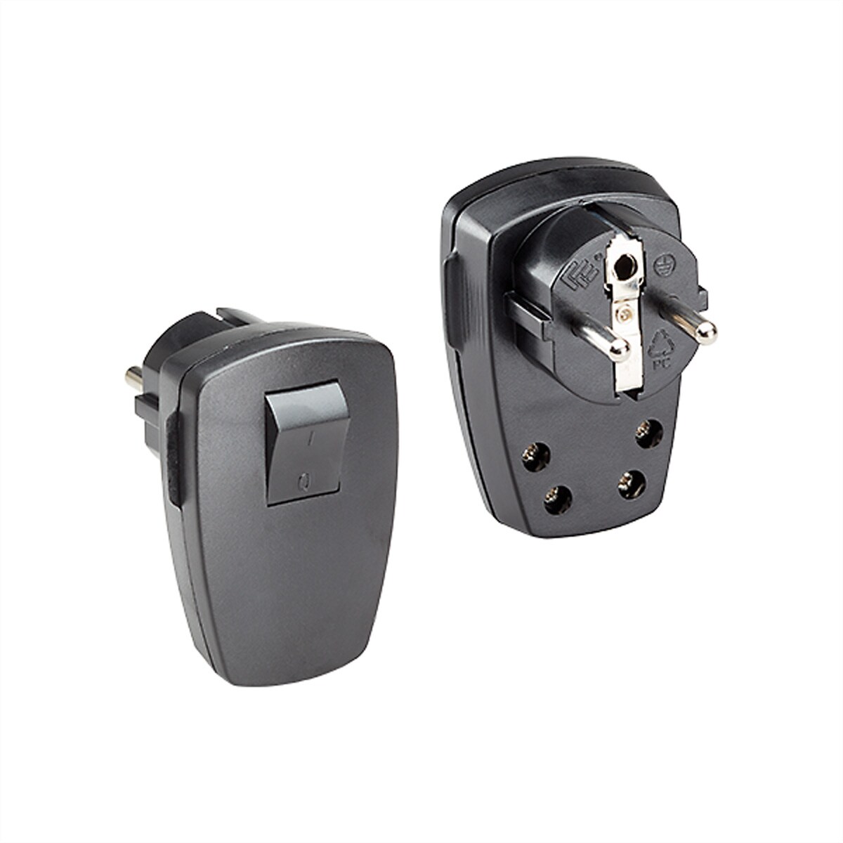 BACHMANN Schutzkontaktstecker, schwarz flach Wippschalter 2-p