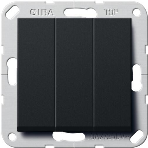 Gira 2832005 Wippschalter 3fach 3fach 10 AX 250 V~ mit Wippen, Universal-Aus-Wechselschalter, System 55, schwarz matt