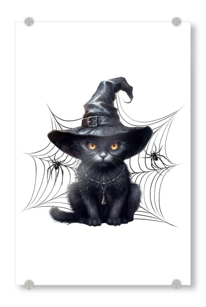 Acrylglasbild "Spooky Black Cat Witch Hat" artboxONE - Tiere,Festivals,Halloween