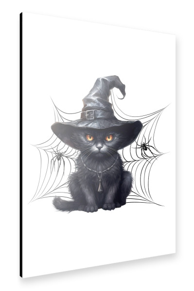 Alu-Dibond "Spooky Black Cat Witch Hat" 30x20 cm artboxONE