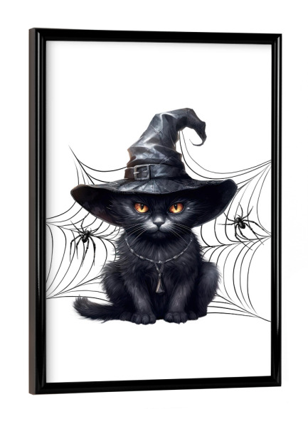 Poster mit Rahmen schwarz "Spooky Black Cat Witch Hat" artboxONE - Tiere,Festivals,Halloween