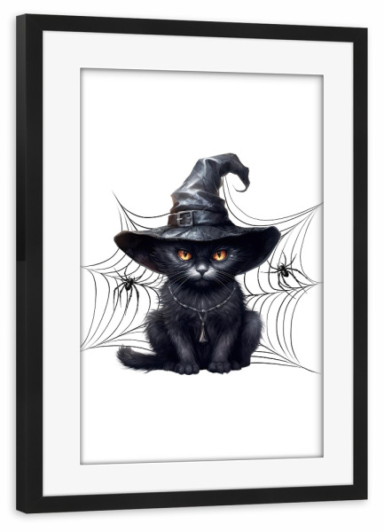 Poster mit weißem Rahmen "Spooky Black Cat Witch Hat" artboxONE - Tiere,Festivals,Halloween