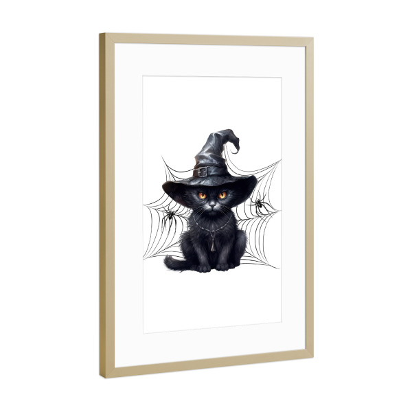 Poster mit Rahmen Gold "Spooky Black Cat Witch Hat" artboxONE - Tiere,Festivals,Halloween
