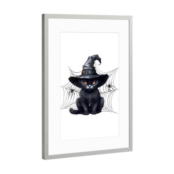 Poster mit Rahmen Silber "Spooky Black Cat Witch Hat" artboxONE - Tiere,Festivals,Halloween
