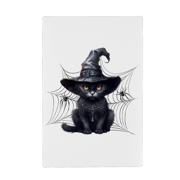 Metall Poster "Spooky Black Cat Witch Hat" artboxONE - Tiere,Festivals,Halloween