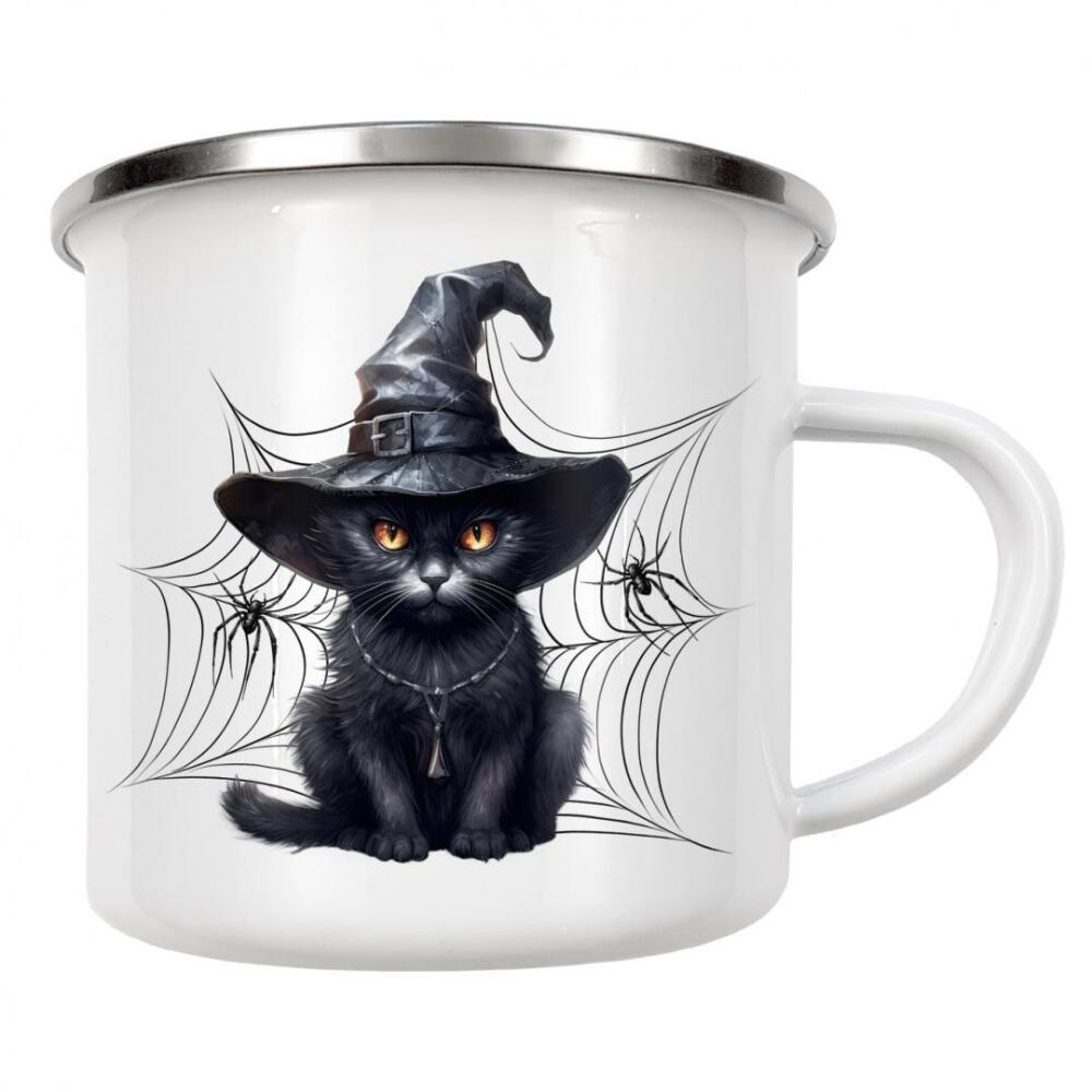 Emaille Tasse "Spooky Black Cat Witch Hat" artboxONE - Tiere,Festivals,Halloween