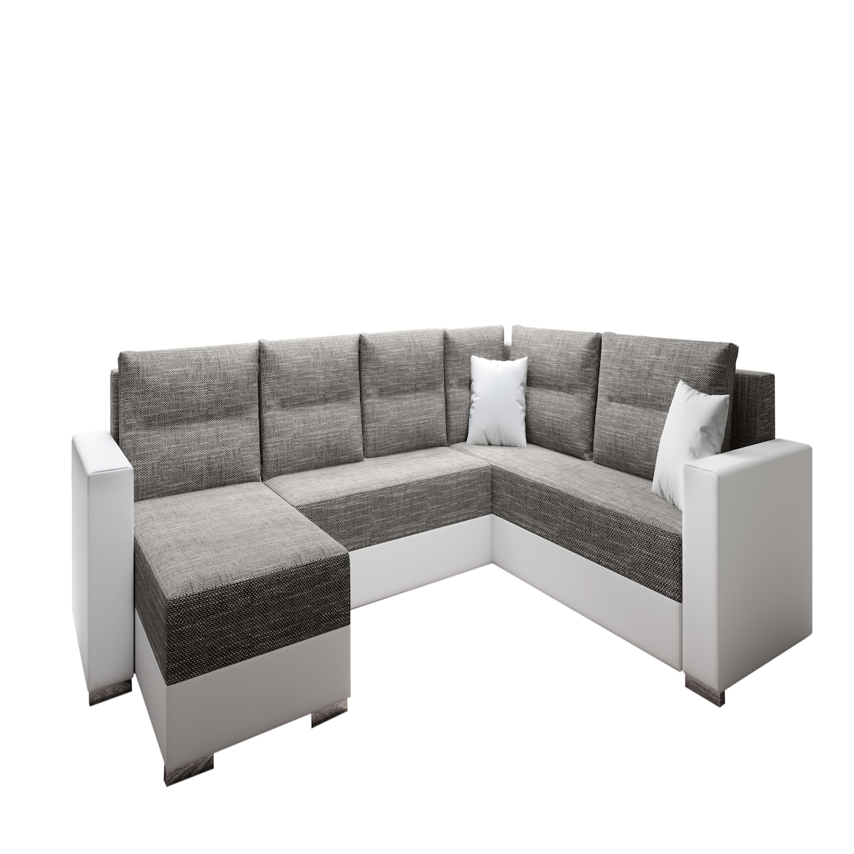 Wohnlandschaft in U-Form PERS V Ecksofa Rechts Eckcouch mit Schlaffunktion Grau Stoff LUXO 6601 + weißes Kunstleder