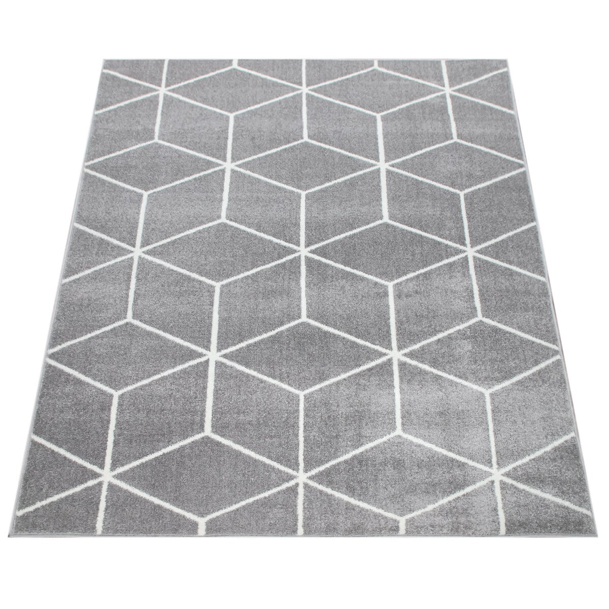 Teppich Kurzflor Wohnzimmer - Grau - 200x290 cm Rechteckig - Raute-Muster, Meliert - 3D-Effekt