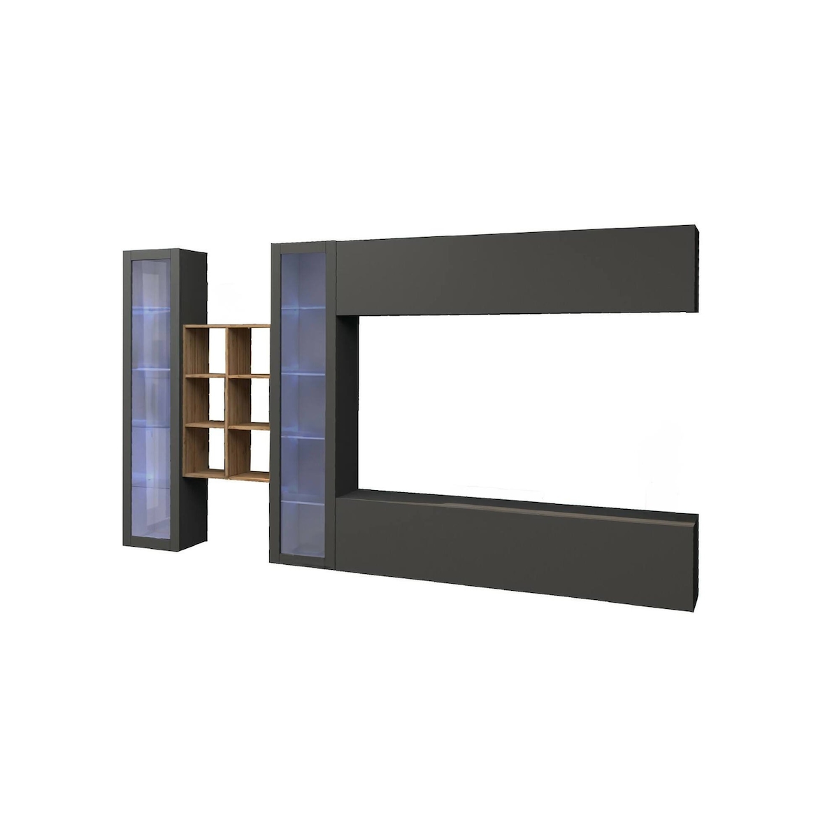 Wohnzimmermöbel Clemente, 100 % Italy, cm 340x30h180, Anthrazit