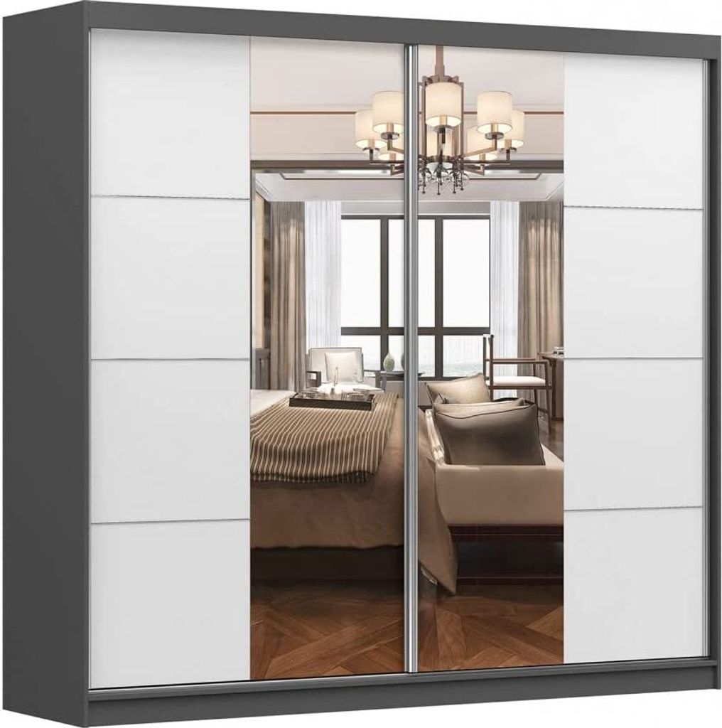 Kleiderschrank M38 mit Spiegel 233 cm, Schwebetürenschrank, Garderobeschrank Schlafzimmer; Wohnzimmerschrank; Korpus Schrank Farbe: Graphit; Farbe...