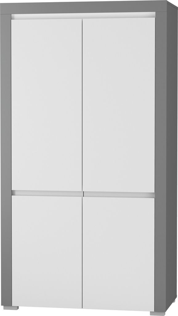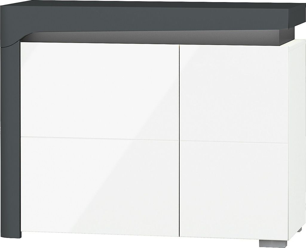 Furniture24 Kommode 102 cm THEA White WHK-2 Schrank 2 türiger Wohnzimmerschrank Anthrazite Weiß Hochganz mit Beleuchtng