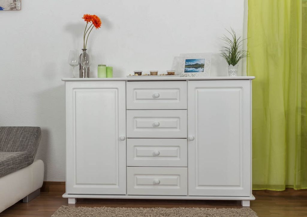 " "Sideboard - praktischem Design - Wohnzimmerschrank - Kommde für Flur - Weiß 100x35x74 cm Massivholz Kiefer NeuMöbel 8792700