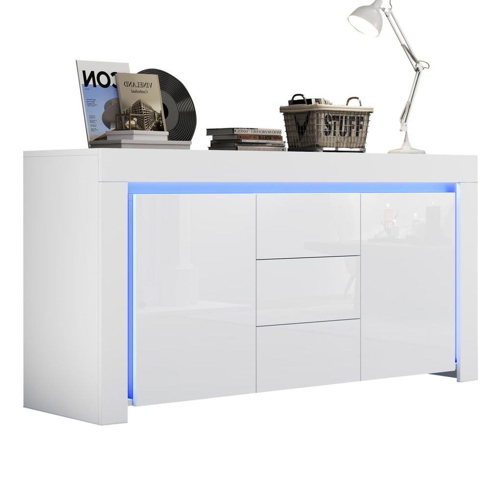 Weiss Seitenschrank Vitrinen 140x40x60cm Mit 3 Schraenken 1 Schublade LED Hochglanz Sideboard Verstellbare Einlegeboeden MDF Wohnzimmerschrank