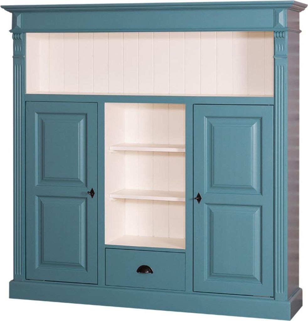 Casa Padrino Landhausstil Bücherschrank Blaugrün / Weiß 60 x 36 x H. 100 cm - Massivholz Schrank mit 2 Türen und Schublade - Wohnzimmerschrank ...